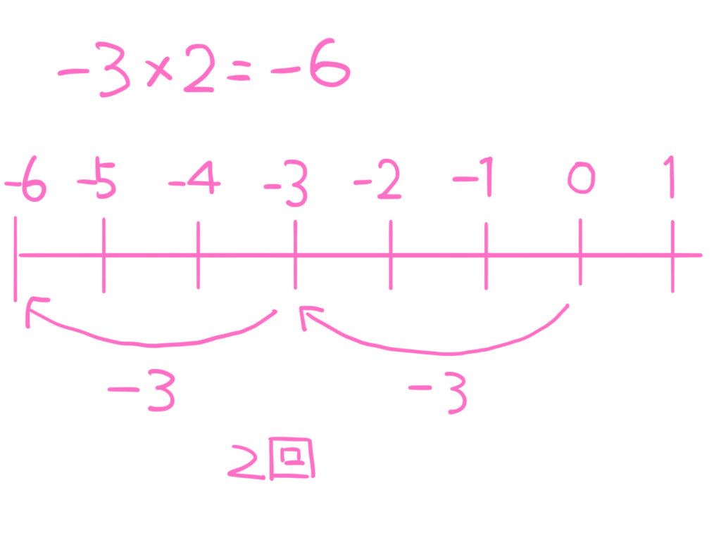 負の数の乗算を考えるとき、まず負の数同士の足し算や引き算を理解することが重要です。たとえば、-3 × +2 は数直線上で左に3単位進む動きを2回繰り返すことを意味し、結果として左に6単位進んだ位置、すなわち-6に到達します。